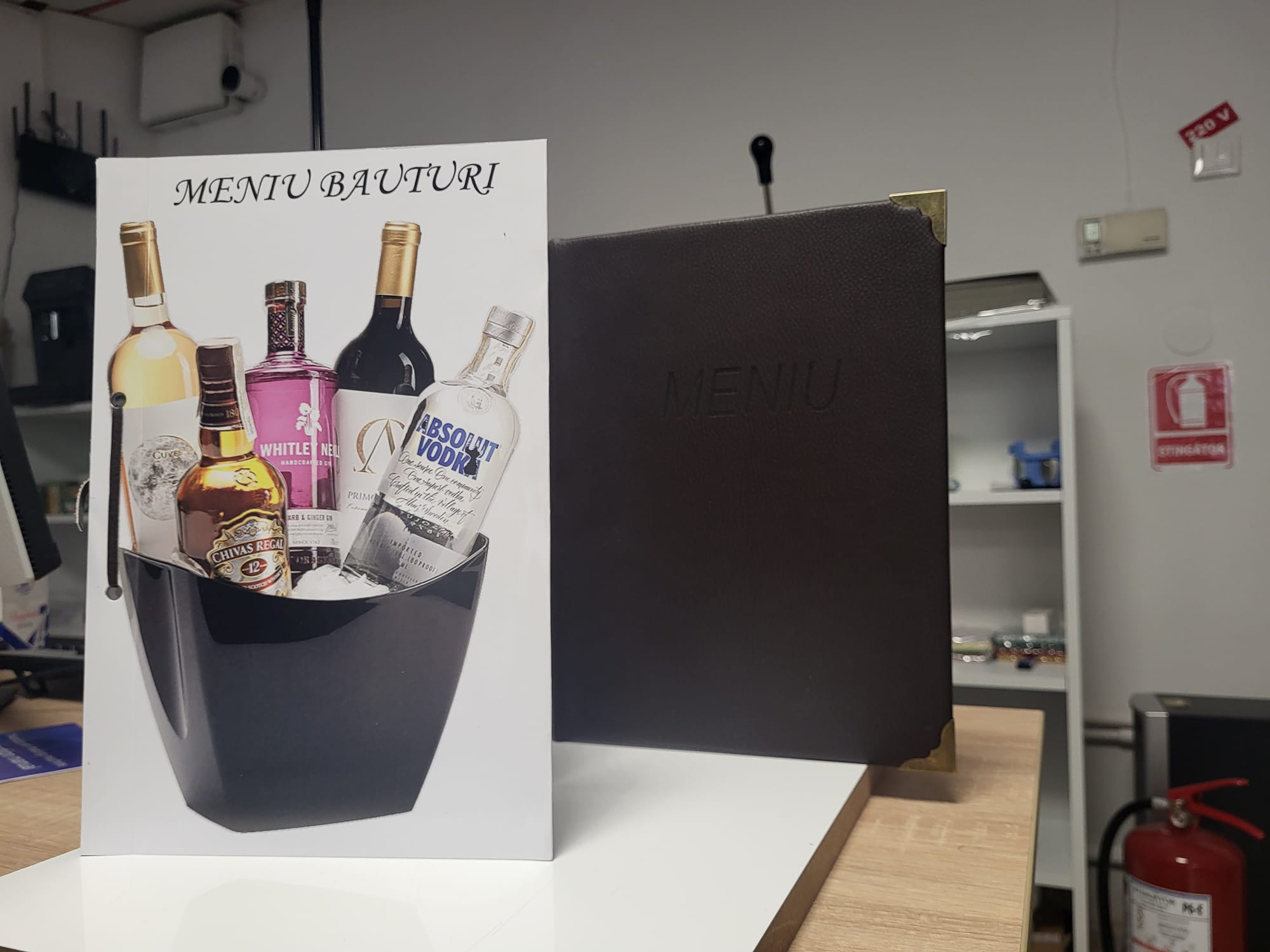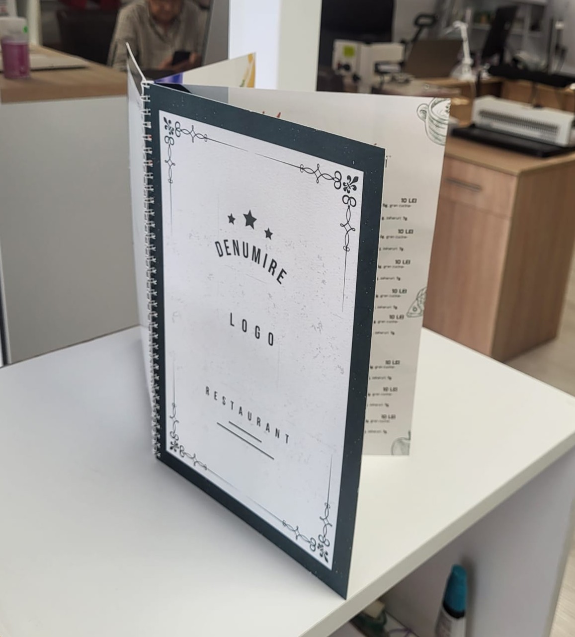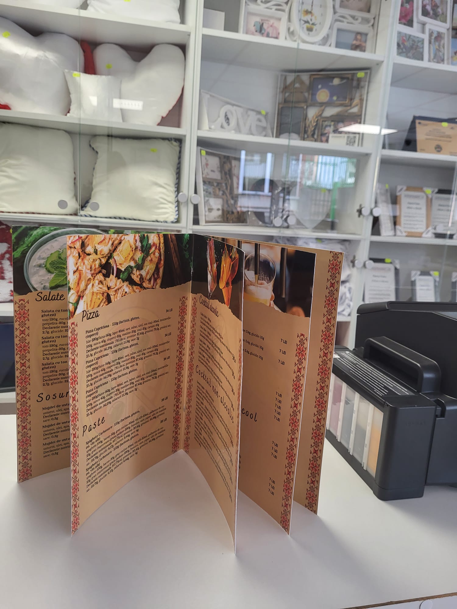 Design și print pentru meniuri, plastifiate sau cartonate, rezistente la uzură intensă.